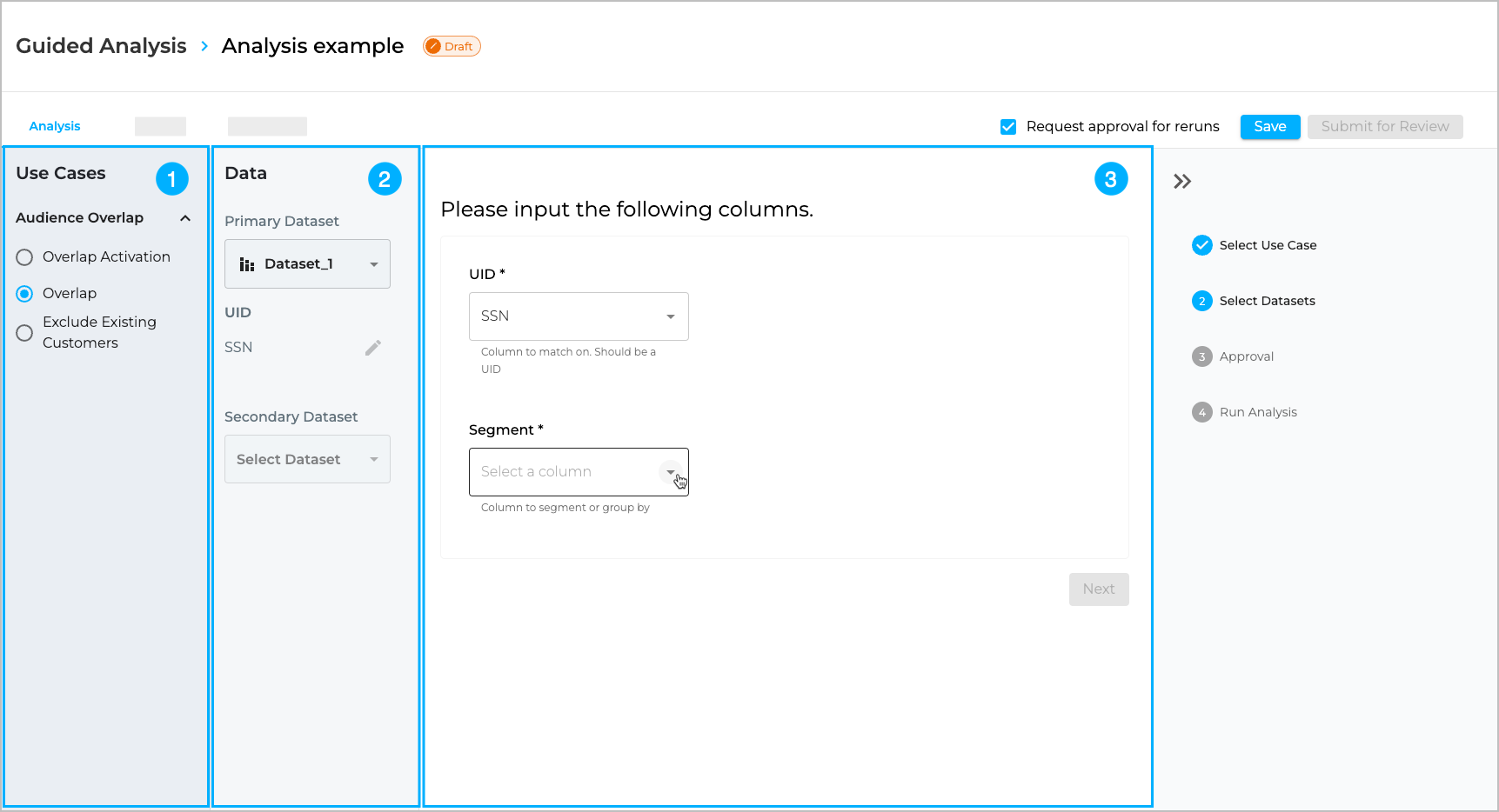 - Review the job creator's dataset and column selections for the job.