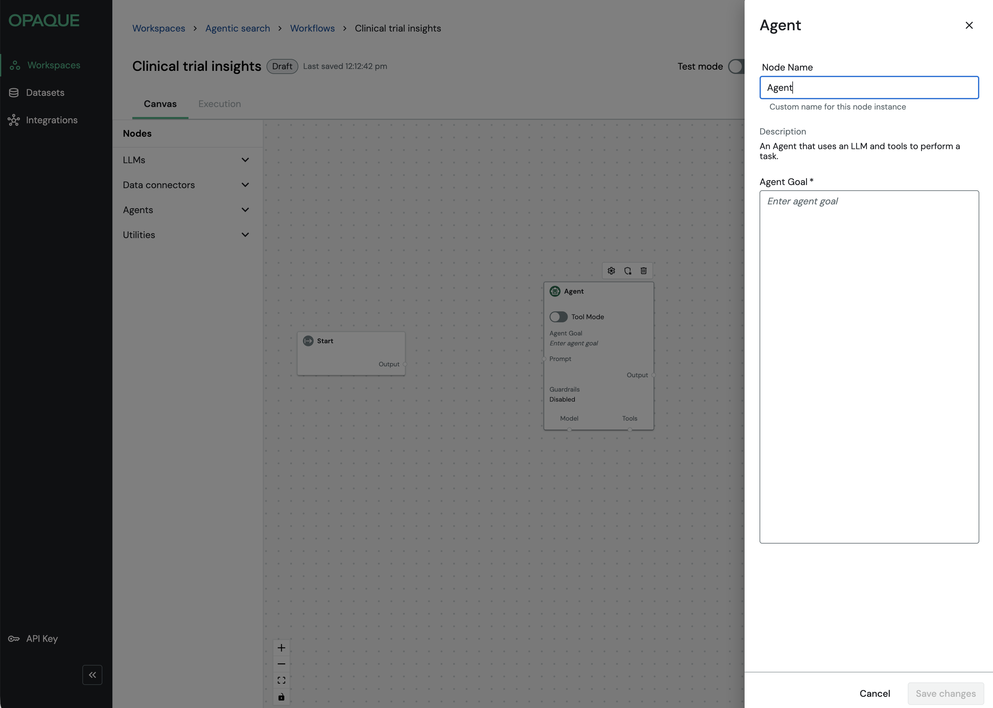 Some nodes in OPAQUE can operate in either standard mode or tool mode. The mode you choose determines how and when the node executes within a workflow.