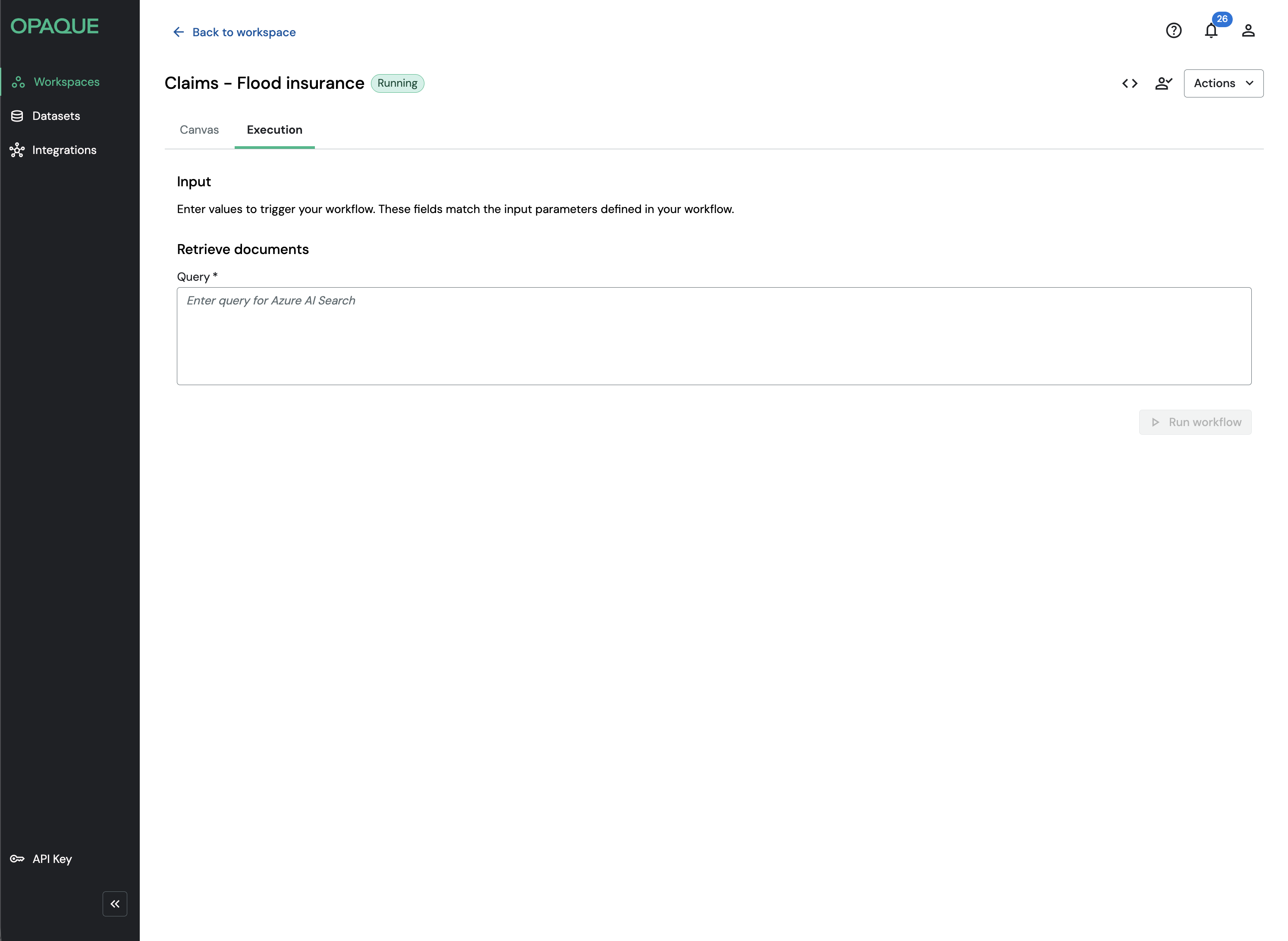 - Enter a value (for example, a query for a retriever-based workflow).