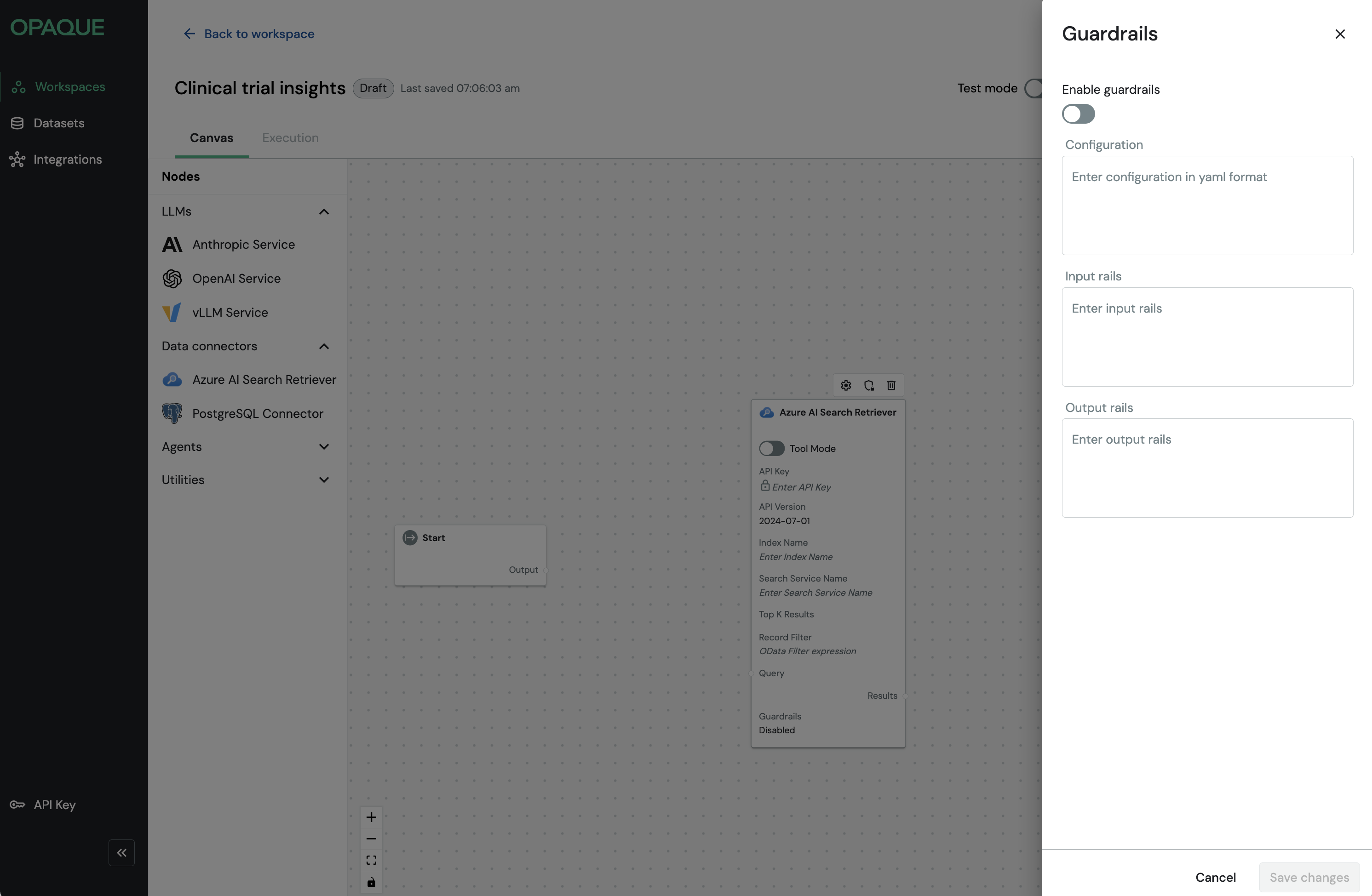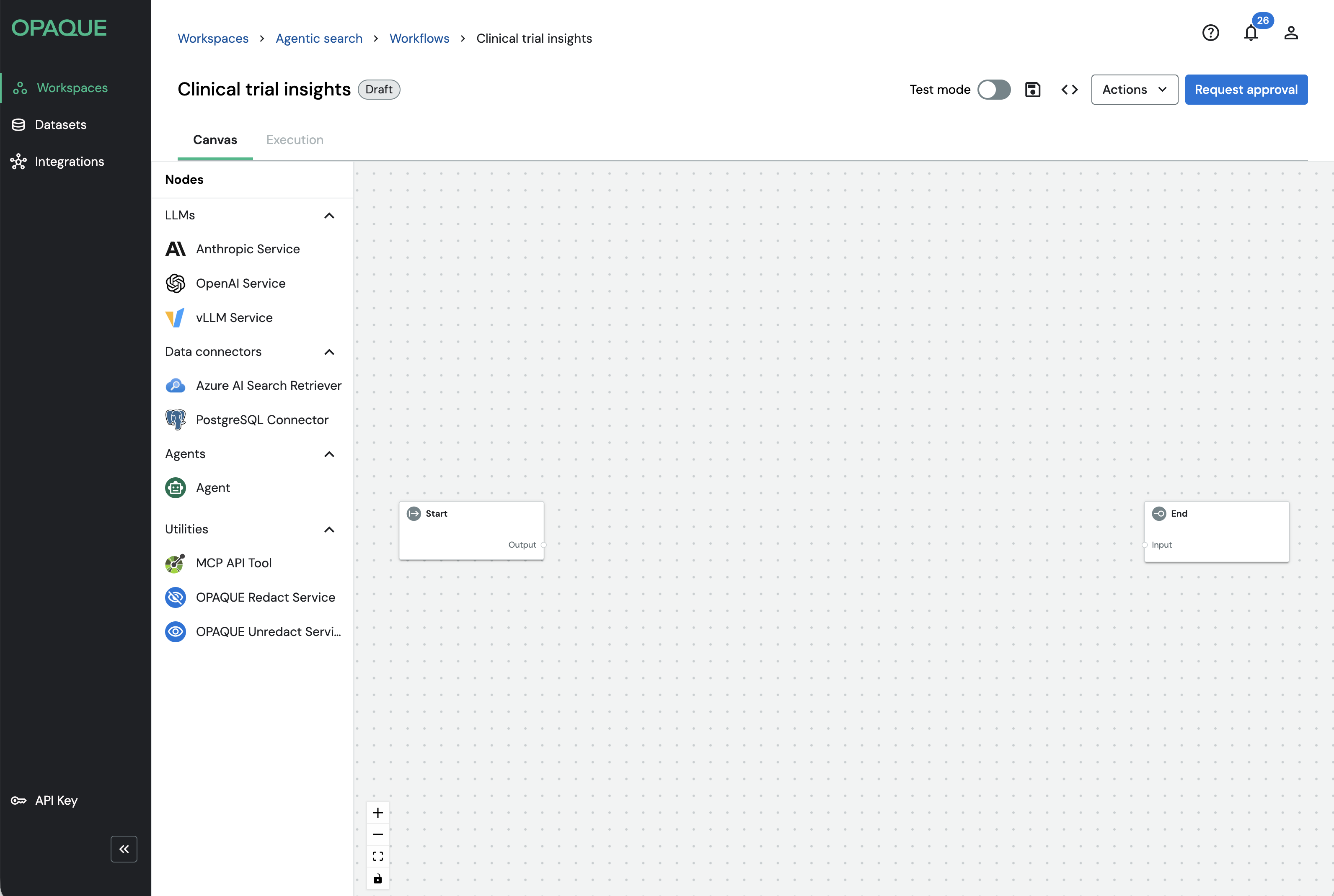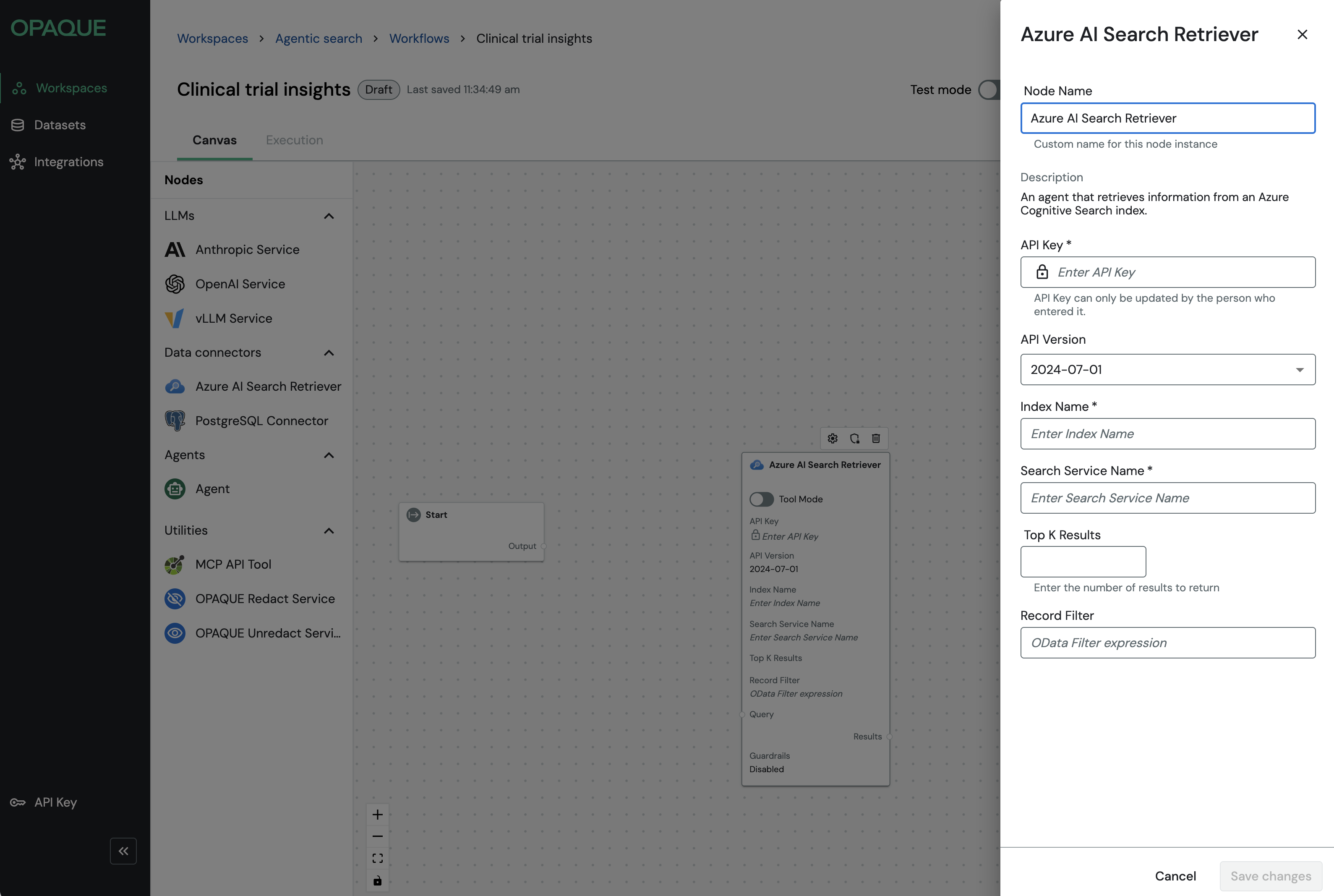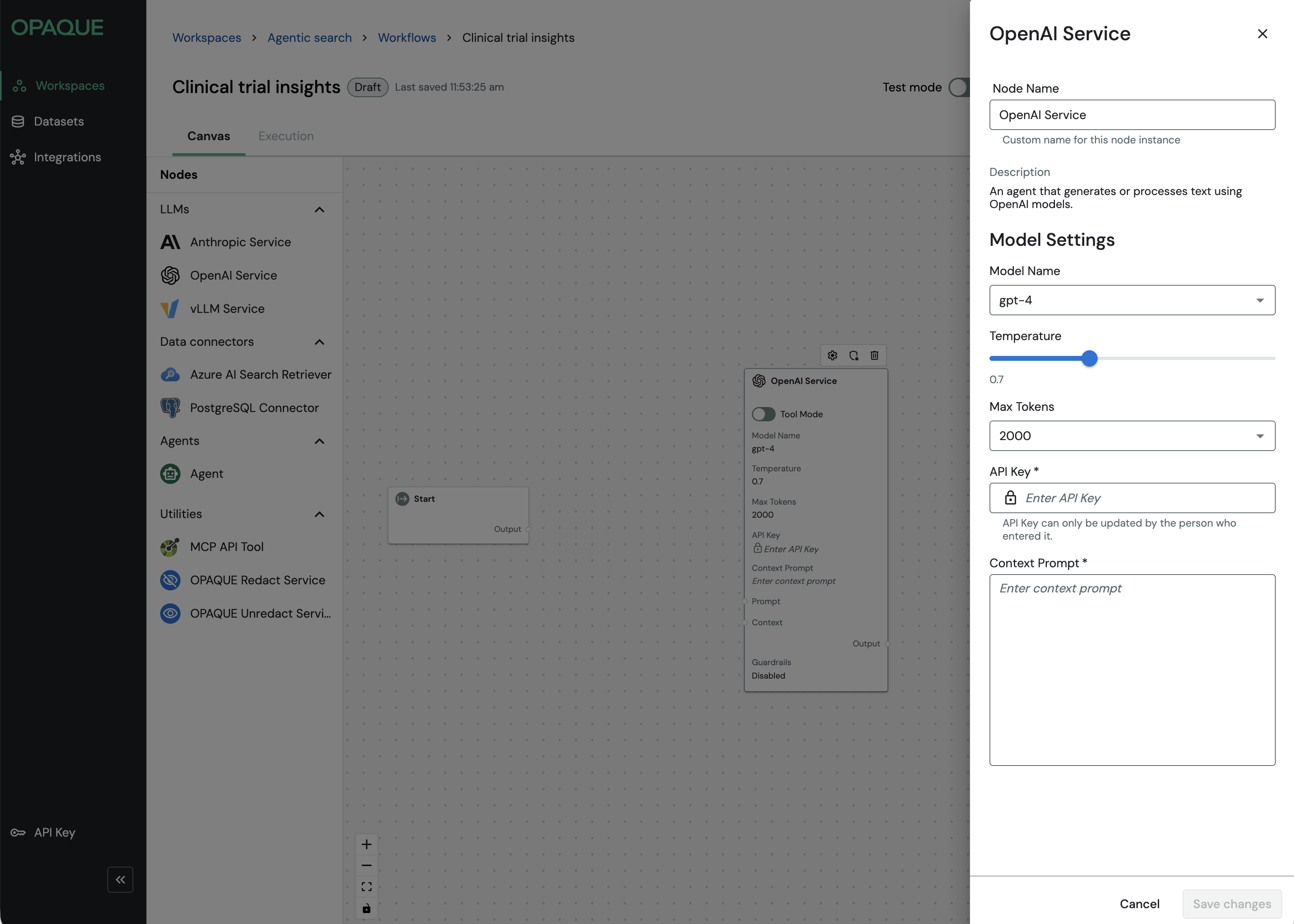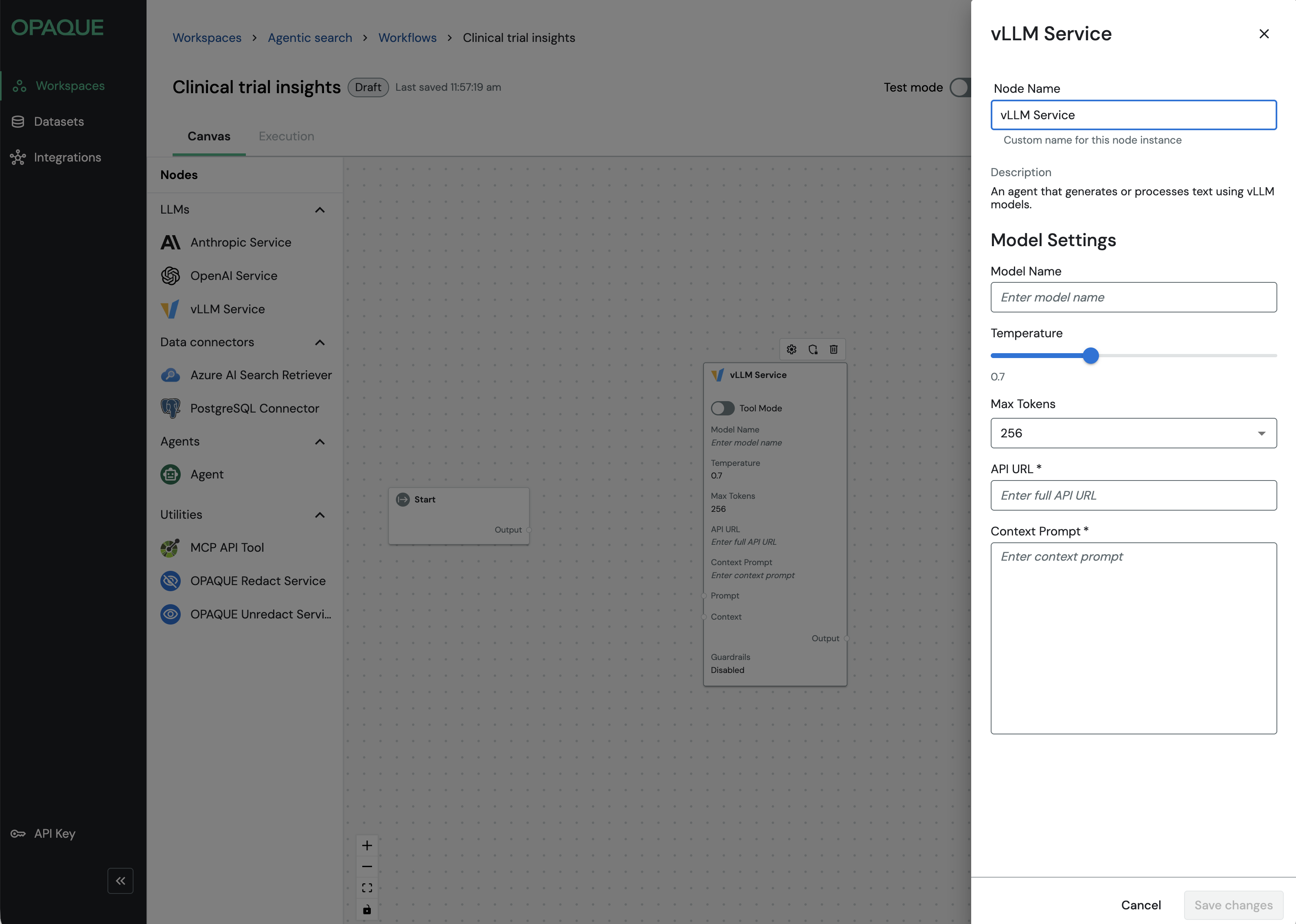 Whether you’re building a simple single-model workflow or a multi-step retrieval-augmented or agent-driven pipeline, every workflow in OPAQUE is composed of nodes like these.