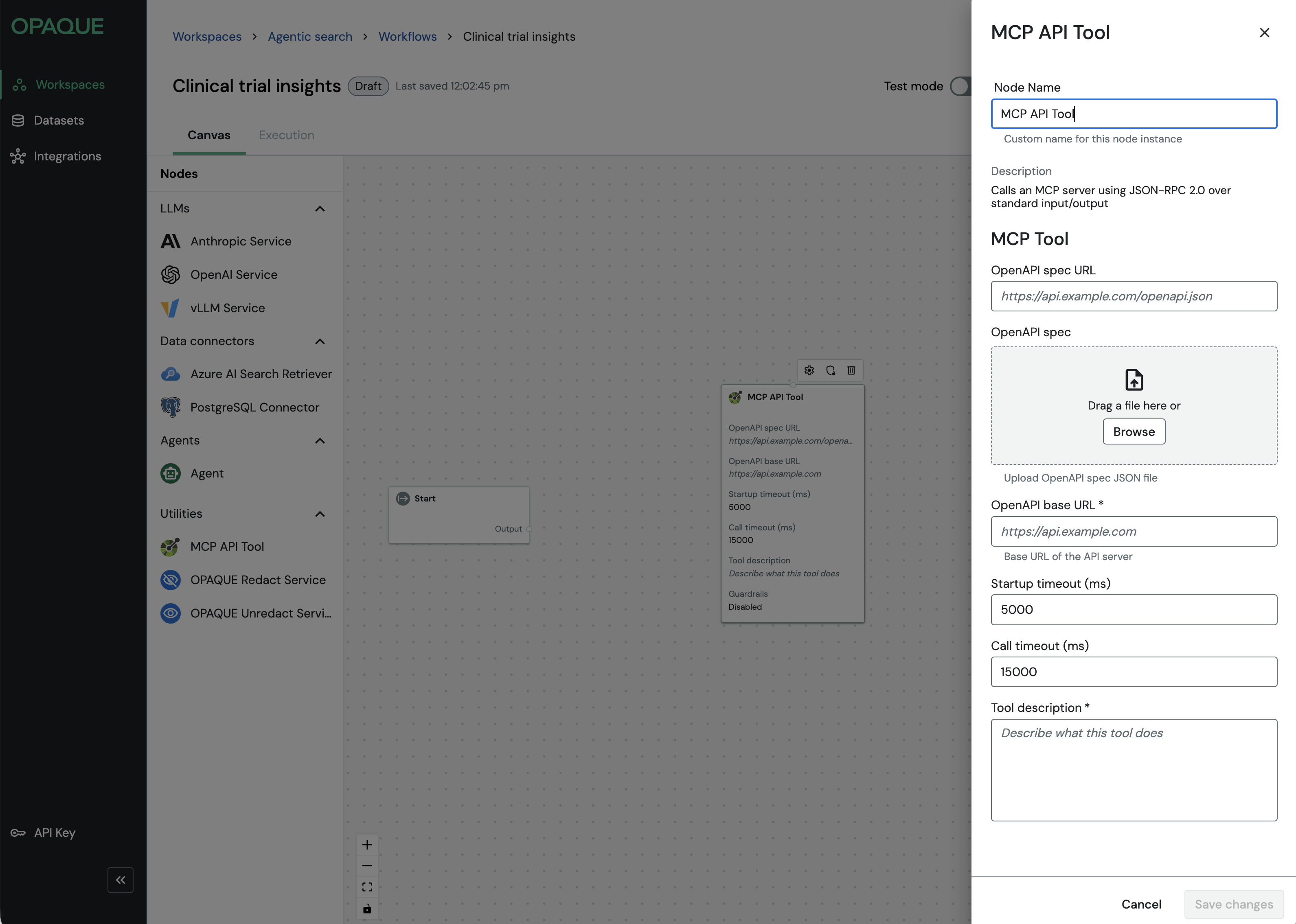 Some nodes in OPAQUE can operate in either standard mode or tool mode. The mode you choose determines how and when the node executes within a workflow.