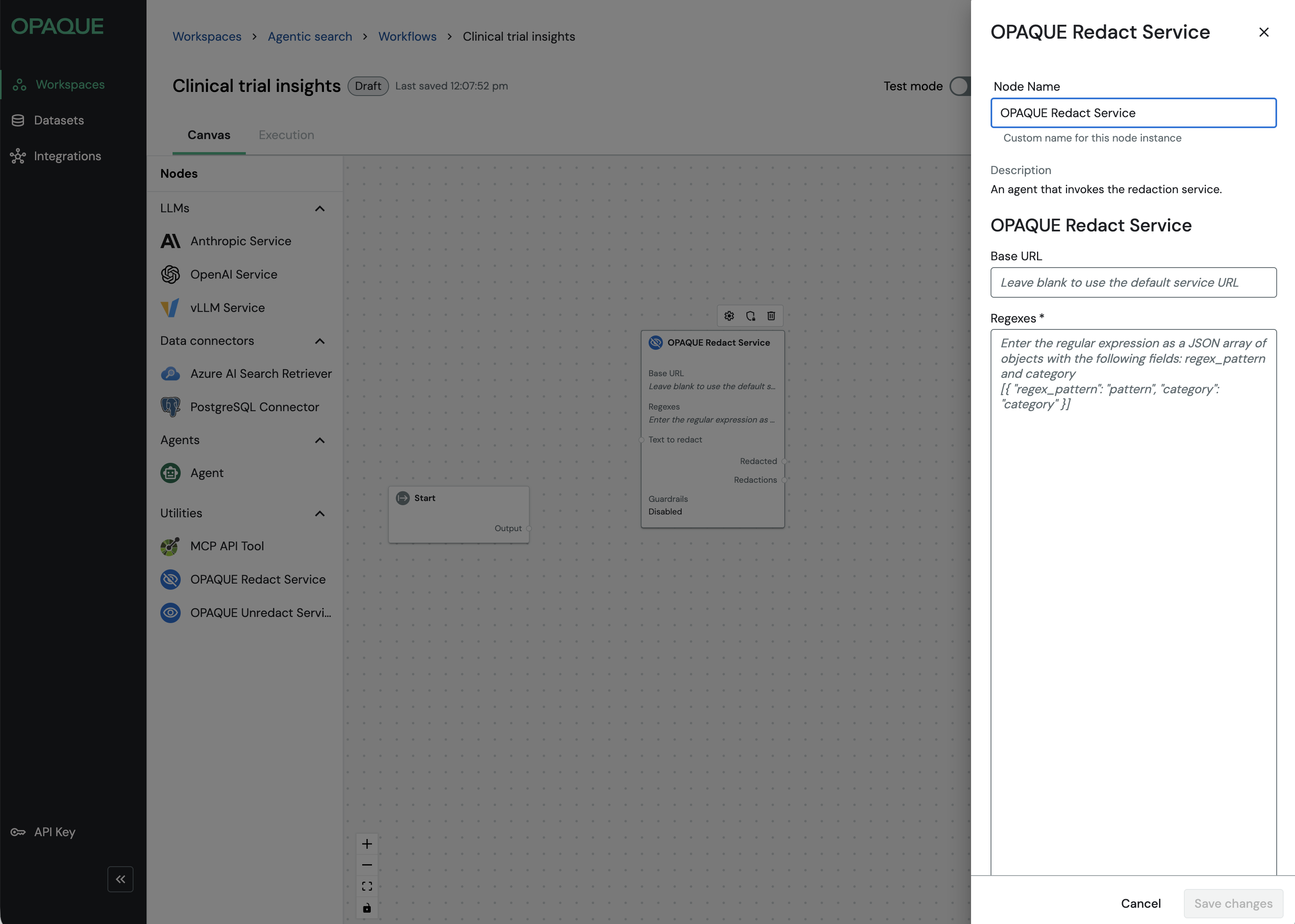 - Base URL: The URL of the redaction service. Leave blank to use the default OPAQUE endpoint.